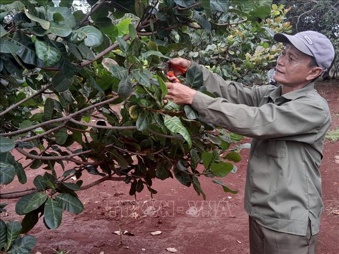 Ông Nguyễn Văn Luân chăm sóc vườn điều hữu cơ đạt năng suất 3 tấn/ha.